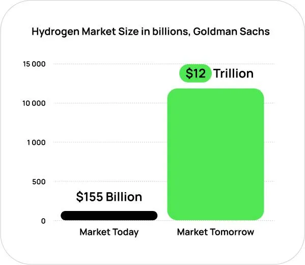 According to Goldman Sachs green hydrogen is a $12 trillion "Once in a Lifetime Market Opportunity."